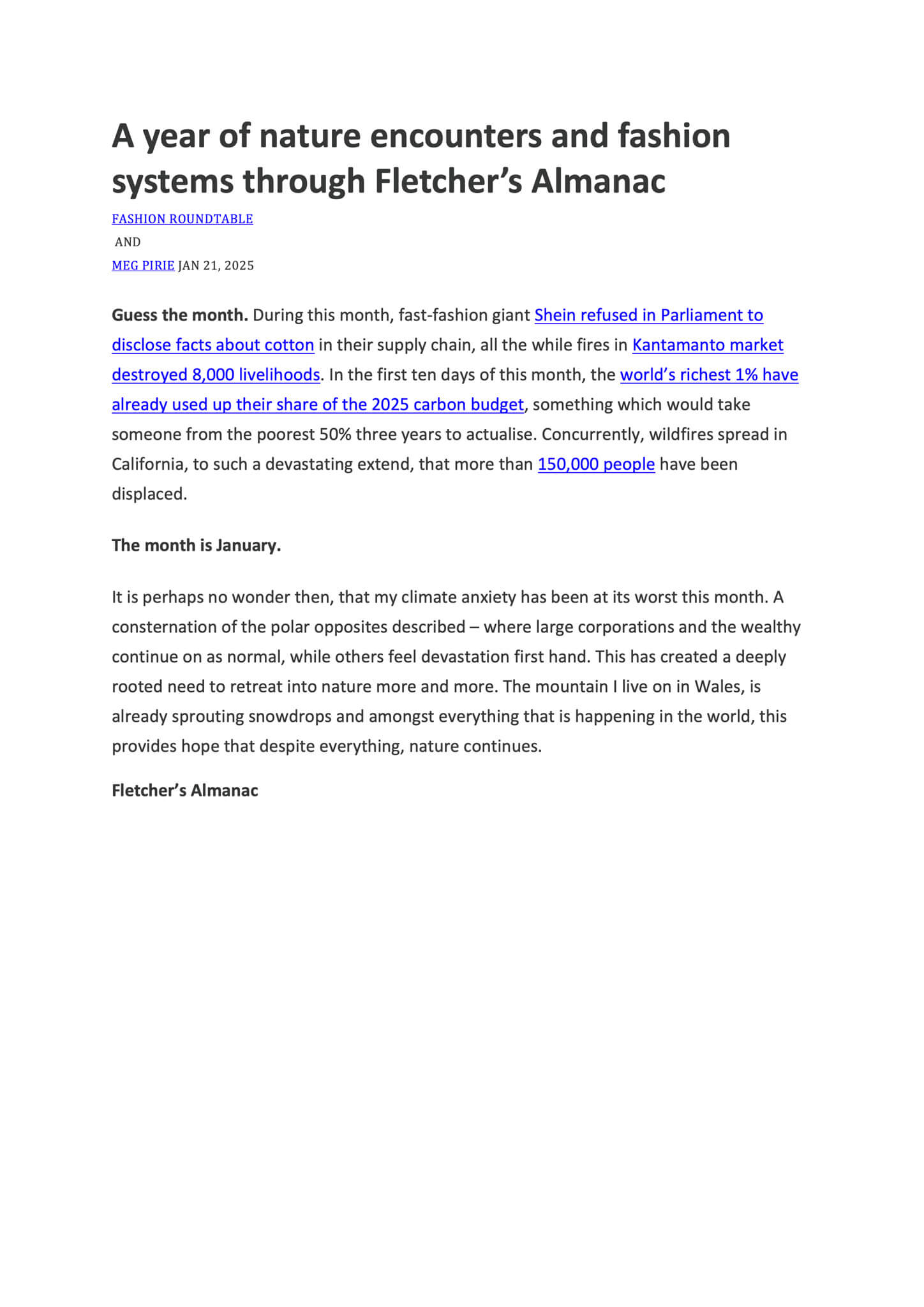 In short vignettes tied to the rhythms of the seasons, Kate Fletcher, fashion and sustainability pioneer, explores interrelationships between clothing and the natural world in this first volume of Fletcher’s Almanac.
